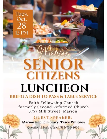 May Senior Citizen Luncheon will be held Tuesday, September 30th at Noon in the Faith Fellowship Church. For more information contact Barb Aldrich at 585-766-8636
